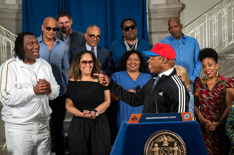 KRS-One wrote "Sound of the Police" and "Black Cop" but now appears with NYC Mayor Eric Adams, who brags about being a cop. (Photo: NYC.gov, Office of the Mayor)