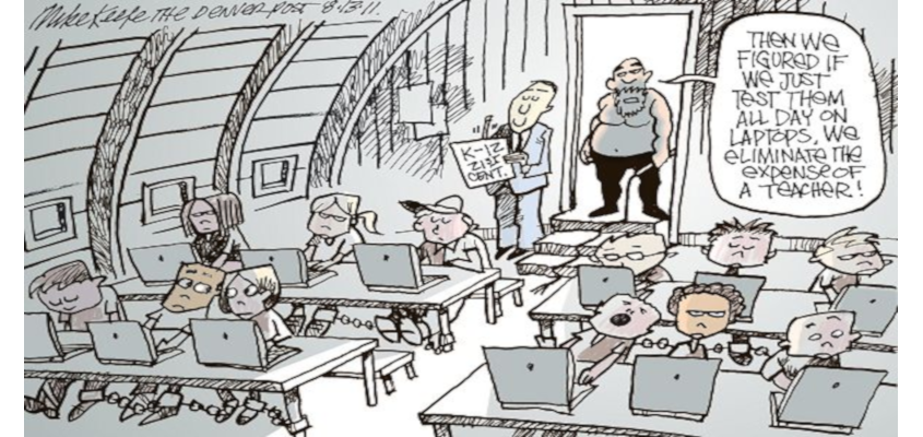 The teachers say the money could be better spent than on cutting big checks to software and technology corporations. They suspect the iPad plan is a Trojan horse brought in to increase reliance on standardized curriculum and testing.