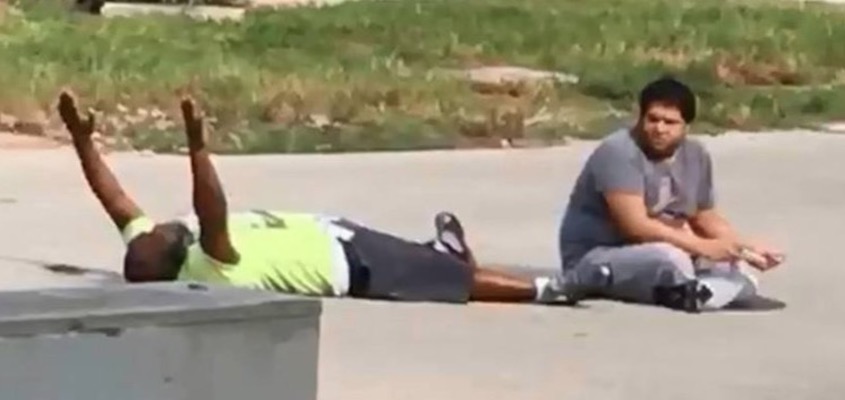 Photo: Mental health therapist Charles Kinsey (arms raised) before being shot by a North Miami police officer.