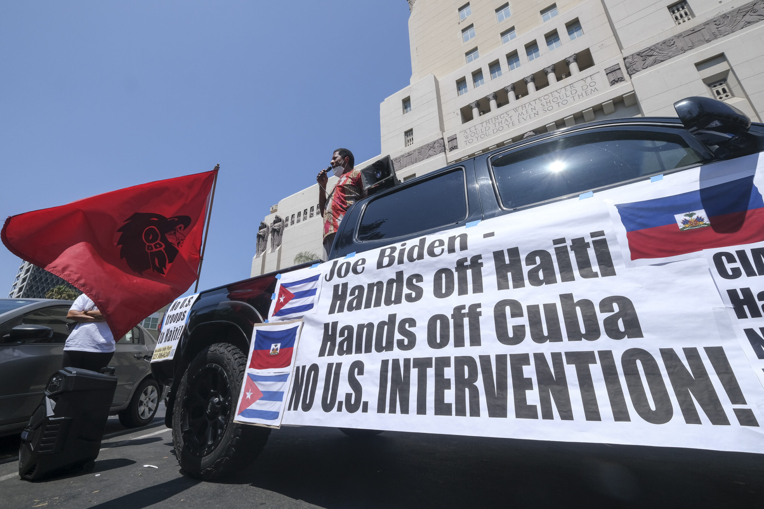 Rally in Los Angeles, July 17, 2021 in solidarity with the people of Cuba and Haiti. (Photo: Ringo Chiu via AP)