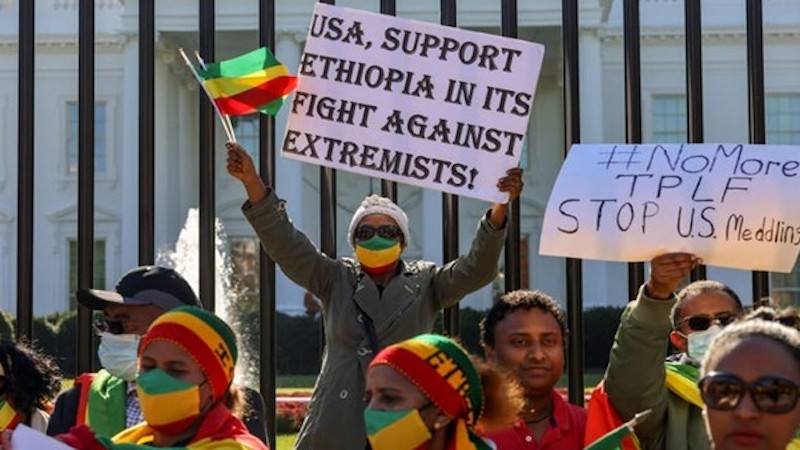 Demonstrators protest the United States stance on the conflict in Ethiopia, outside the White House in Washington, U.S., November 8, 2021. (Photo: REUTERS/Evelyn Hockstein)