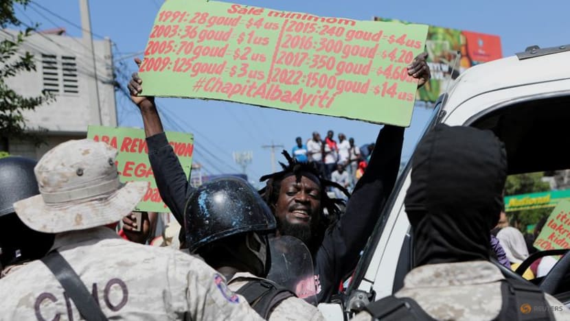 Garment worker protesting in Port au Prince, February 17, 2022 Reuters: Ralph Tedy Erol