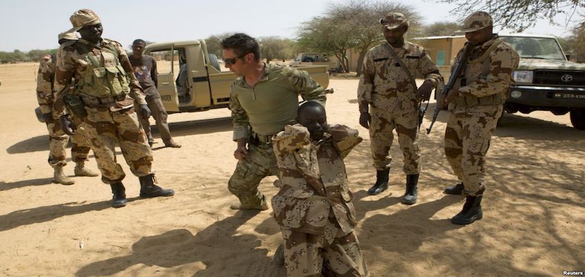 American Special Forces operate separately from the drone base, which is run by the Air Force. The Green Berets are on the ground “training” Niger’s special forces and carrying out capture missions with them from the outposts of Ouallam near the Malian border, Aguelal near the Algerian border, Dirkou along the main transport routes between Niger and Libya, and Diffa, along the southeastern border with Nigeria and Chad, according to the same Nigerien commander. I’ve actually seen them at the Diffa base, a prominent local journalist has seen them at Dirkou, and I spoke to a person who worked at the Aguelal base.