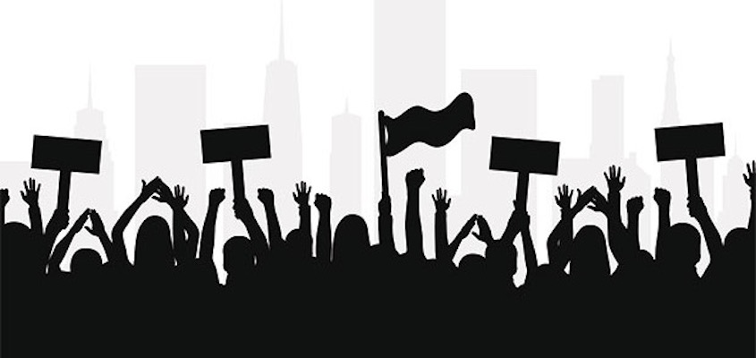 slogans at ear-splitting decibels reverberating