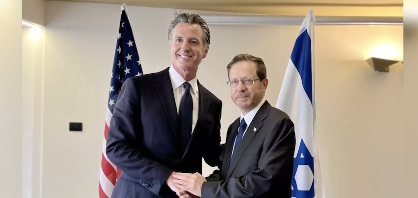 California Governor Gavin Newsom with Israeli President Isaac Herzog in Israel.