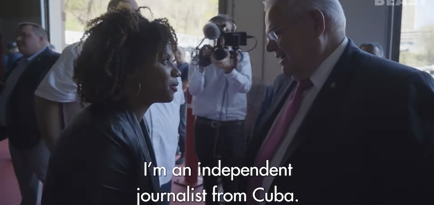Cuban journalist Liz Oliva Fernández tried and failed to get an interview with New Jersey Senator Bob Menendez. Screenshot from "Hardliner on the Hudson."