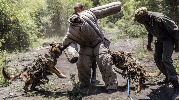 Dogs trained to attack poachers in South Africa (Photo: Twitter @business)