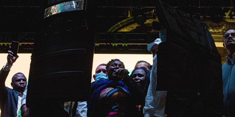 Bodyguards cover vice presidential candidate Francia Márquez Mina, after being targeted with a laser beam during her closing campaign rally in Bogotá, Colombia, on May 21, 2022. (Photo: Sebastian Barros/NurPhoto via Getty Images)