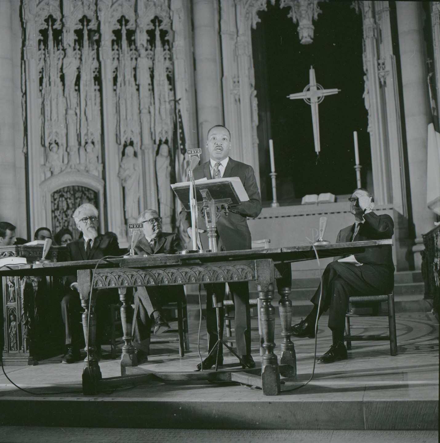King delivering his speech “Beyond Vietnam” at New York City’s Riverside Church in 1967 (Photo John C. Goodwin)