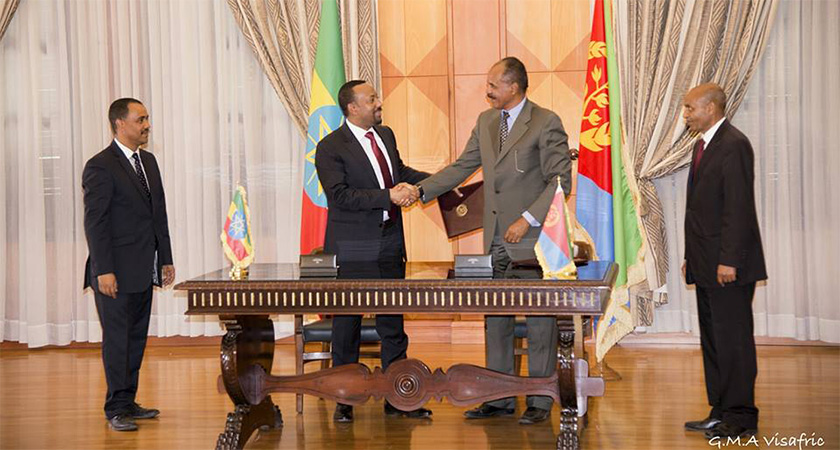 Ethiopian president Abiy Ahmed and Eritrean president Isaias Afwerki in 2018 (Photo: G.M.A. Visafric)