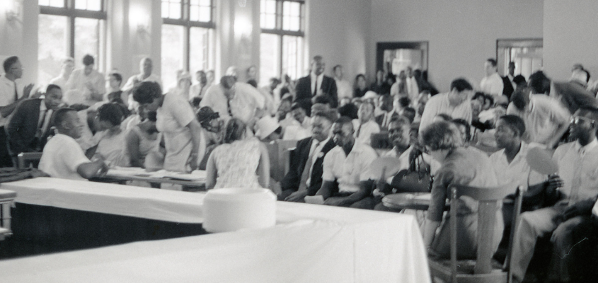 Crowd at a Mississippi Freedom Democratic Party meeting in Hattiesburg, Mississippi, July 1964, Herbert Randall Freedom Summer Photographs, USM