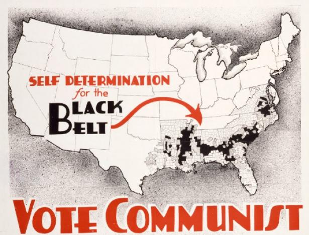 [xxvi] Ibid. Black Bolshevik: Autobiography of an Afro-American Communist. Liberator Press: Chicago. 1977. p. 232 Haywood writes “Under conditions of imperialist and racist oppression, Blacks in the South were to acquire all the attributes of a subject nation. They are a people set apart by a common ethnic origin, economically interrelated various classes, united by a common historical experience, reflected in a special culture and psychological makeup. The territory of this subject nation is the Black Belt, an area encompassing the Deep South, which, despite massive outmigration, still contained (and does to this day) the country’s largest concertation of Blacks. The imperialist oppression created the conditions for the eventual rise of a national liberation movement with its base in the South. The content of this movement would be the completion of the agrarian democratic revolution in the South; that is, the right of self-determination as the guarantee of complete equality throughout the country.”  Also see Jones, Claudia. “On the Right to Self-Determination for the Negro People in the Black Belt,” in Beyond Containment: Autobiographical Reflections, Essays, and Poems.. Ed. Carol Boyce Davies. Ayebia Clarke Publishing. 2011. p. 60-70.