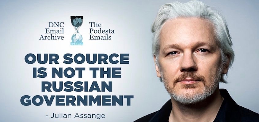 “On the one hand, we don’t speak about our sources in general, but we have said our source is not a state in this case. There’s been no presentation of evidence that that claim is not a correct claim. But what are the allegations, the formal allegations by US intelligence agencies? They obviously can’t be trusted. Their business—the CIA’s business—is both stealing information and fabricating information. That’s its business. Its statements obviously can’t be trusted. But what are its statements at their strongest? Its statements at their strongest are that there were hacks of the DNC. They provide no evidence. It’s their ‘assessment.’ There were hacks of the DNC that they believe were somehow sponsored by Russia, and this information then flowed through some third party [Guccifer 2.0 and DCLeaks] and came to us. And we published it.
