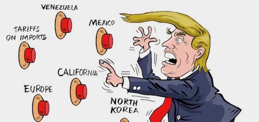 Now Trump is threatening to impose tariffs on Mexico to pressure Mexico into a border deal to stem Central American immigrants coming over the Mexican border to the U.S.