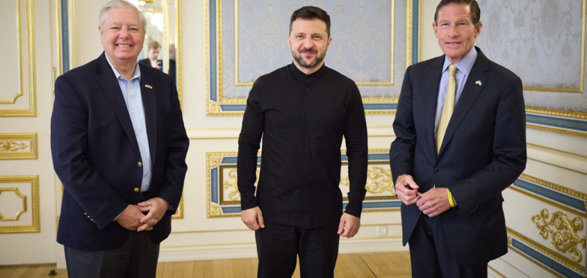 Senator Lindsey Graham, President Volodymyr Zelensky and Senator Richard Blumenthal meet in Kiev on May 30, 2025. President.gov.ua