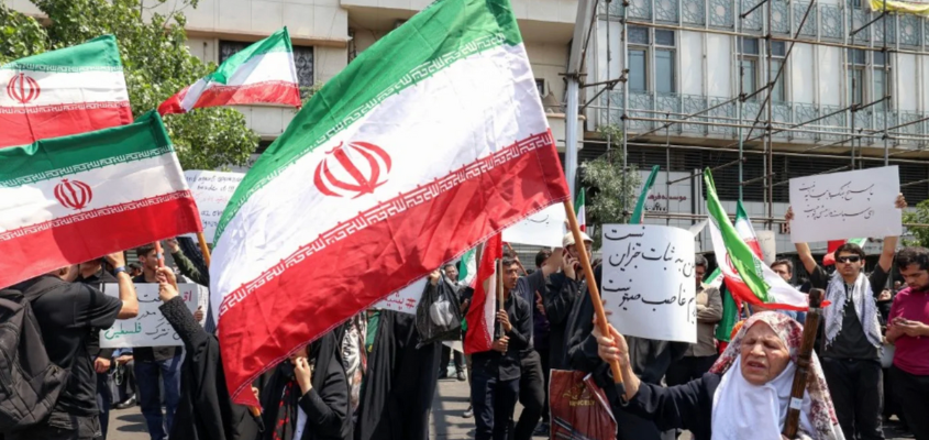 People gather in central Tehran to protest against Israel’s wave of strikes on Iran on 13 June 2025 (Atta Kenare/AFP)