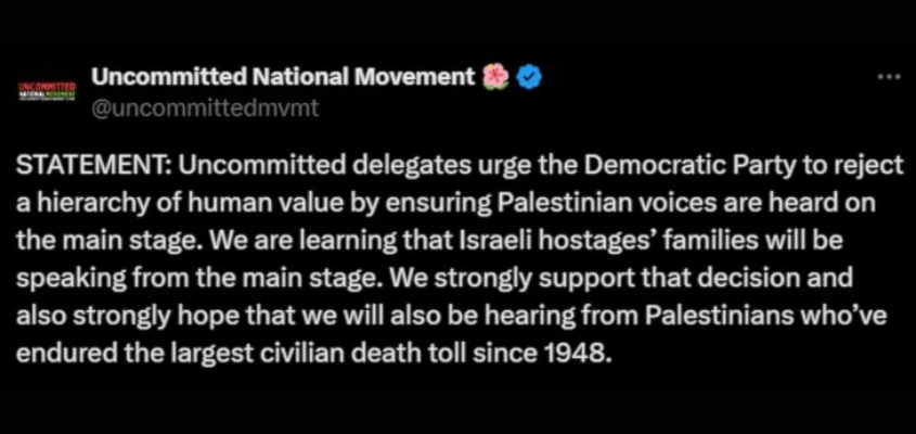 Tweet from the Uncommitted Movement