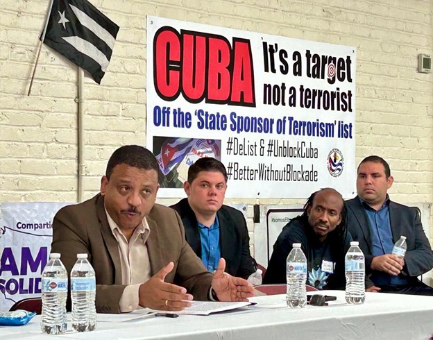 At the National Network On Cuba 2022 Fall Meeting, Cuba’s Ambassador to the United Nations Yuri Gala López explains how State Sponsors of Terrorism designation intensifies the U.S. blockade. (Photo: Bill Hackwell)
