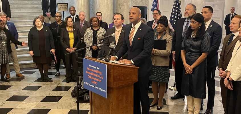 Gov. Wes Moore speaks at press conference Jan. 31, 2024 unveiling a juvenile justice bill. (Matt Bush/WYPR)