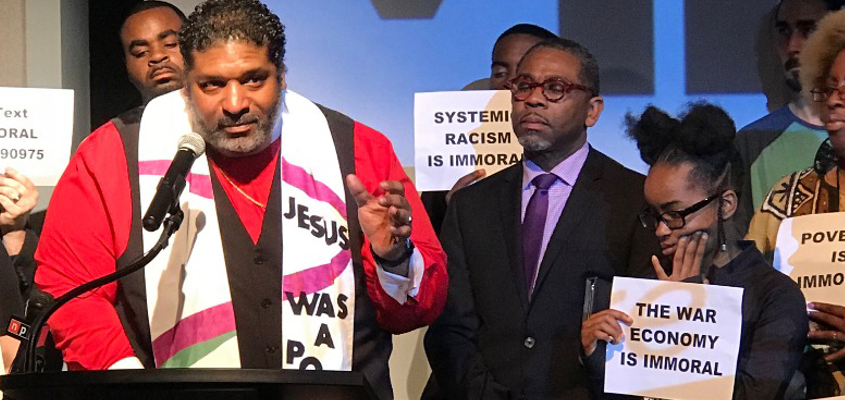 In a little over an hour, Rev. Barber’s sermon stakes out a number of anti-imperialist and anti-militarist positions on US and world history, and on current US imperial policy more explicit and more advanced than any the Church has issued in the past. He notes the foundational American crimes of Native American and African genocide, land theft and slavery, white supremacy and settler colonialism. Barber condemned Vietnam and scores of US interventions all over the planet since WW2 as illegal and immoral, and denounces environmental devastation as immoral too. He names the US empire’s military budget as the principal obstacle to human progress inside the US. These and other evolving positions reflect the fact that the Church is a field of contention too, in which a number of institutional and activist forces are vying for influence. Barber’s position makes him a kind of Church politician, and activists inside and outside the Church are pushing Barber and the PPC to the left.