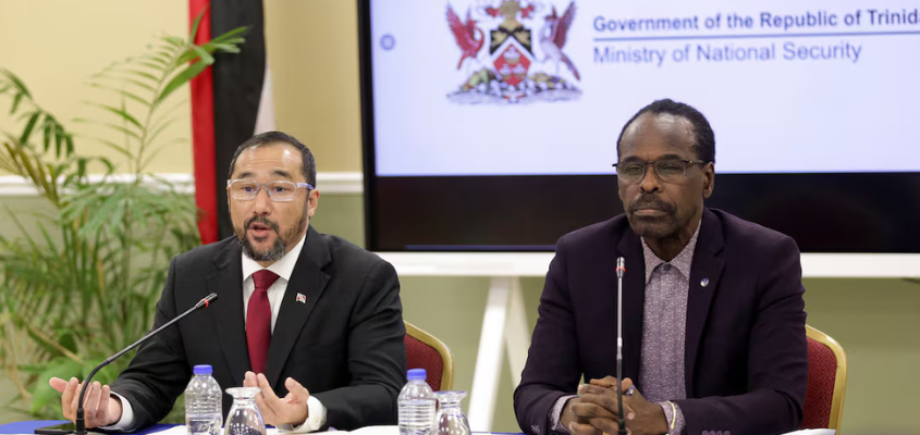 Acting Attorney General and Minister of Energy Stuart Young and Minister of National Security Fitzgerald Hinds hold a press conference at the National Security Ministry in Port of Spain, Trinidad and Tobago, on December 30, 2024. (Photo: Yahoo News)