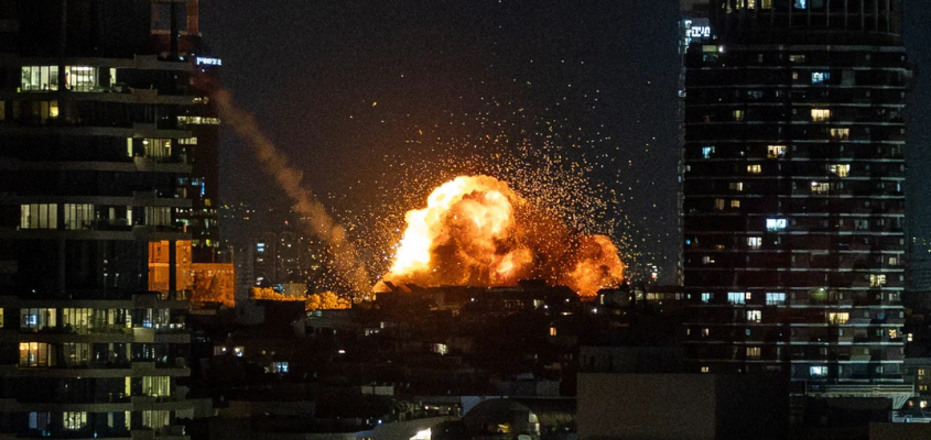 Fire and smoke rise in Tel Aviv following the impact of an Iranian missile fired in retaliation to US-Israeli aggression on February 28, 2026. Photo: Chaim Goldberg/Flash90.