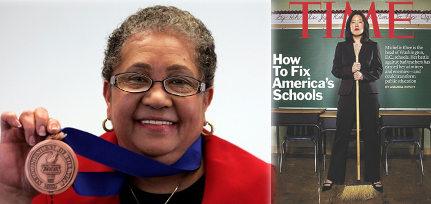 Michelle Rhee, the former chancellor of DC's public schools enjoyed a reign of terror over a couple years in which she fired hundreds of teachers, and a number of principals, and handed over public school properties to her favorite charter schools, and ceaselessly berated parents and educators. There are widespread allegations that she too fostered a “climate of fear” under which teachers and administrators knew that if scores on expensive, irrelevant tests did not rise, their schools would be closed. But DC is not Georgia, and Michelle Rhee remains the darling of the White House, corporate media and even cruise missile liberals like Bill Maher and Jon Stewart. Rhee has made herself into the permanent propagandist of the privatizers, from her stint at Teach For America (her former boss at TFA succeeded her as DC schools chancellor) to her one-person organization, Students First.