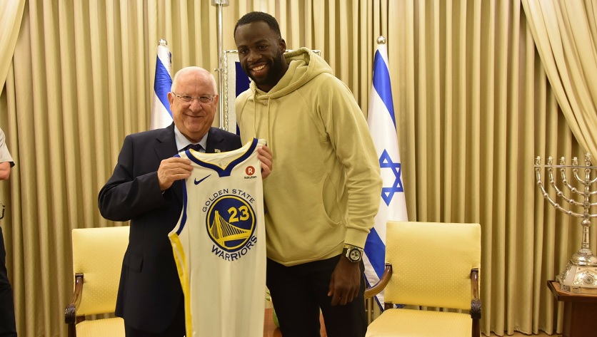 Draymond Green and Israeli president Reuven Rivlin in 2018 (Photo by Kobi Gideon/GPO)