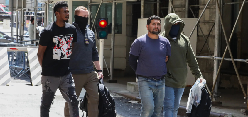 Federal agents arrest people showing up for an immigration check-in on Elk Street in Lower Manhattan, June 3, 2025. Photo: Alex Krales/THE CITY
