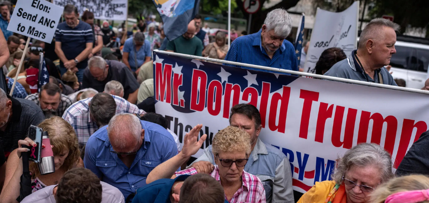 White South Africans rallying in support of President Trump outside the U.S. Embassy in Pretoria, South Africa, last month. Photo; Joao Silva/The New York Times