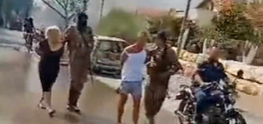 Palestinian resistance capturing hostages during the Al Aqsa Flood operation