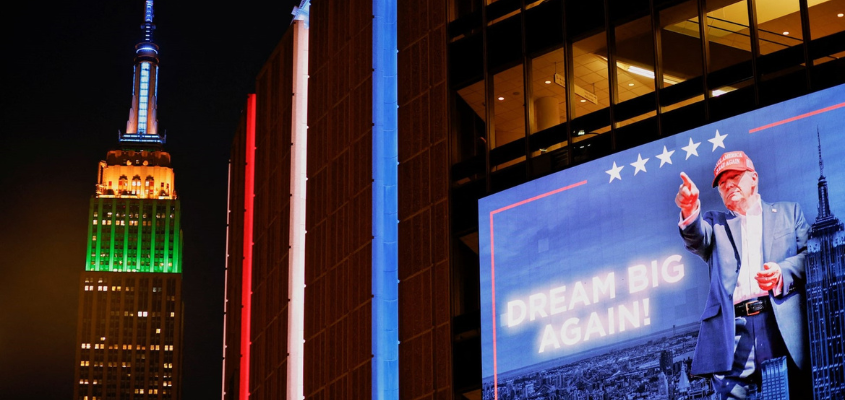 Trump rally on October 28, 2024 at Madison Square Garden with Empire State Building in the background. REUTERS/Eduardo Munoz