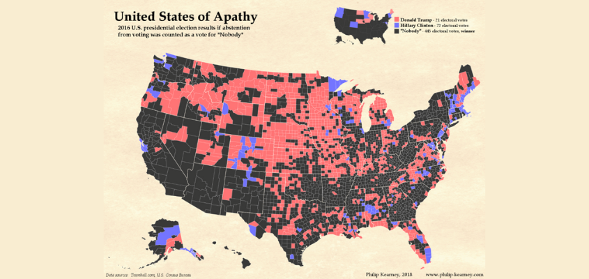 If it were possible to tally non-voters, "Nobody" would have won the 2016 presidential election. Philip Kearney