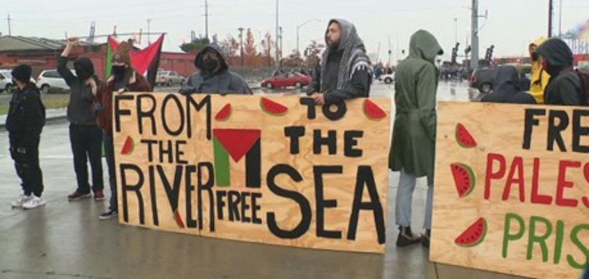 Protesters in Tacoma, Washington block loading of an Israeli bound ship.
