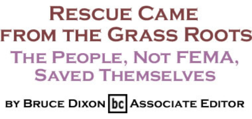 This should have been no surprise.  Much of the National Guard was in Iraq.  FEMA never demanded that Red Cross officials leaders expand their personal network of contacts across the tracks into Black Biloxi, Black Mobile, Black Gulfport and Black Pascagoula.  So well stocked and well-supplied Red Cross operations sat in white churches only a short distance from predominantly black areas which had not been reached by any private or government relief agency before black churches and black ex-offenders and black grassroots organizations took matters into their own hands.