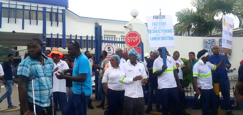 Unilever Caribbean Ltd workers protest outside the company’s compound in Champs Fleurs, Trinidad. August 2019. Photo by Narissa Fraser.