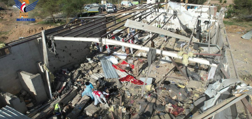 Aftermath of the strike on a migrant detention facility in Saada (photo via the SABA news agency)