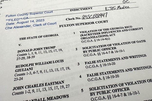 Any and all of these issues are fodder for serious discussion, but one wouldn’t know it because the fourth Donald Trump indictment was just handed down in Georgia and has pushed every other issue out of the news cycle. District Attorney Fani Wills indicted Trump and 18 others, charging them with 41 counts of conspiring to overturn Georgia’s election results in 2020.